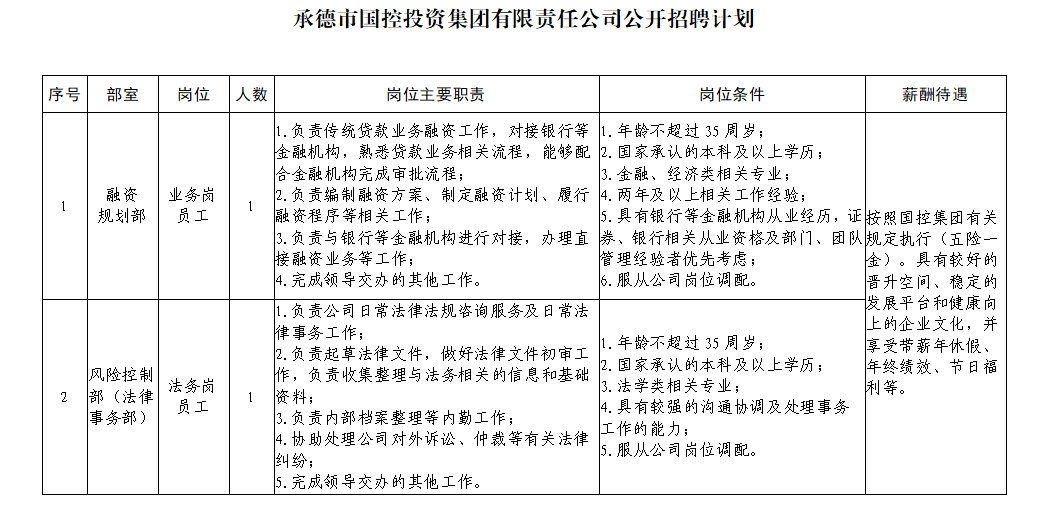 具體應(yīng)聘條件見《承德市國控投資集團有限責(zé)任公司公開招聘計劃》。