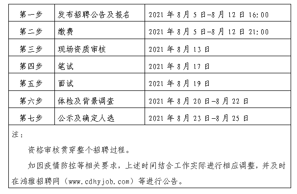 2021年8月5日至 2021年8月12日16:00 在鴻雅招聘網(wǎng)(http://www.cdhyjob.com/)、鴻雅微信公眾號、國控集團官方網(wǎng)站等發(fā)布招聘公告。